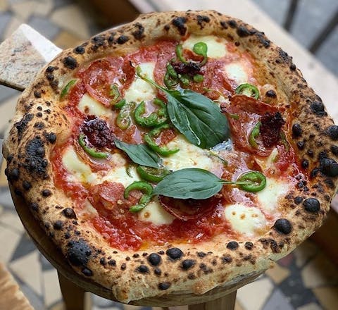 Gennaro Nasti, chef de la pizzeria Bijou, classée dans les meilleurs Pizzeria en Europe (en dehors d'Italie), envoi à cette adresse une pizza goûteuse dont la pâte est l'une des meilleurs de sa catégorie grâce à une maturation parfaitement maitrisée.